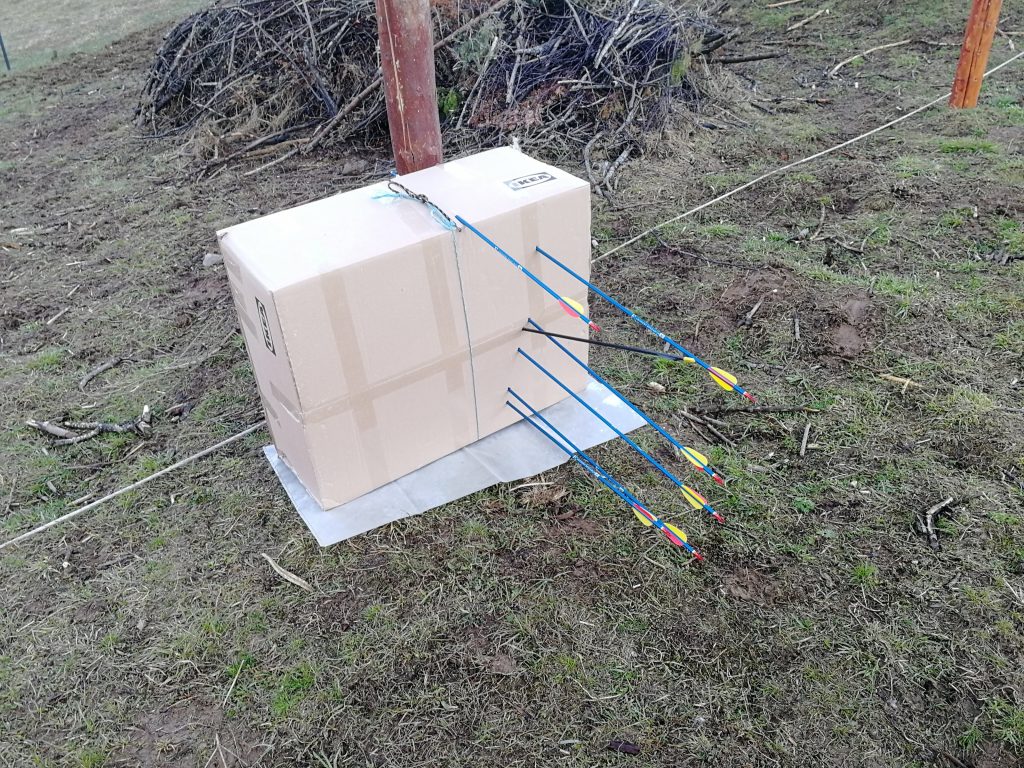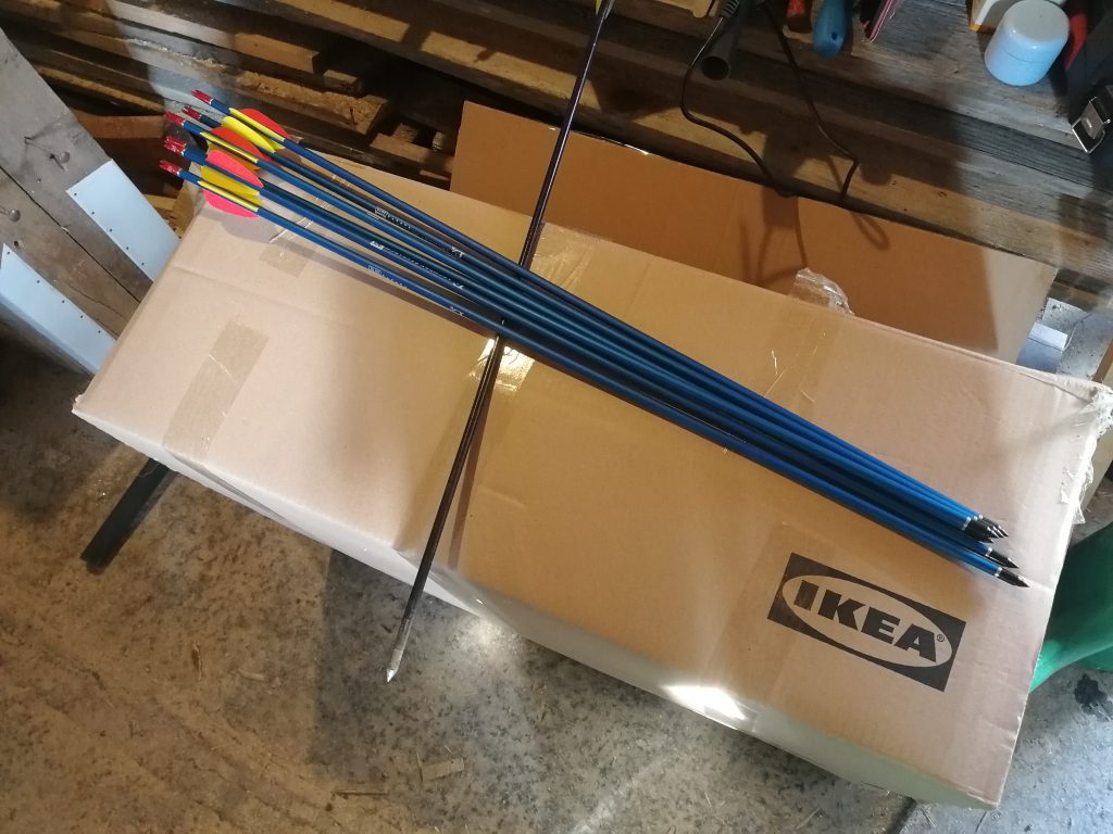Here are all the arrows and a target made from a cardboard box and a bunch more cardboard stuffed inside: