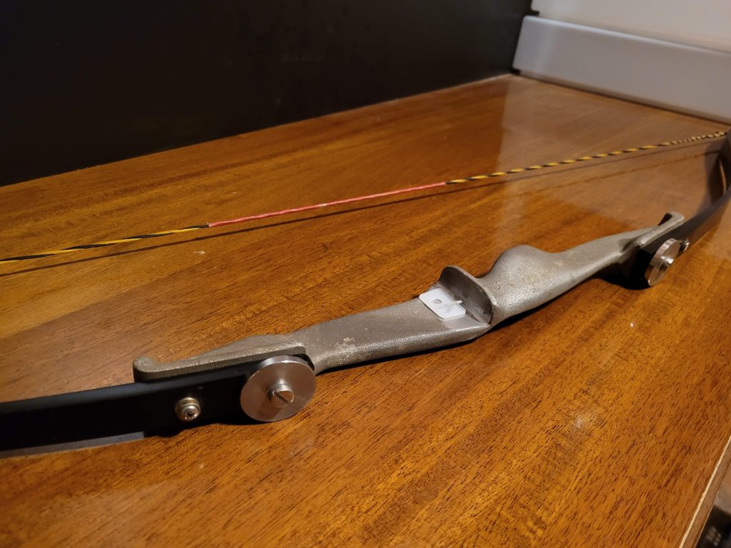 The holes in the riser for the limbs weren’t tapped and the limbs themselves were all different draw weights, so the first thing I did was to tap some threads into the riser and find appropriate screws. As it usually is, the correctly sized smaller ones ended up being mismatched!